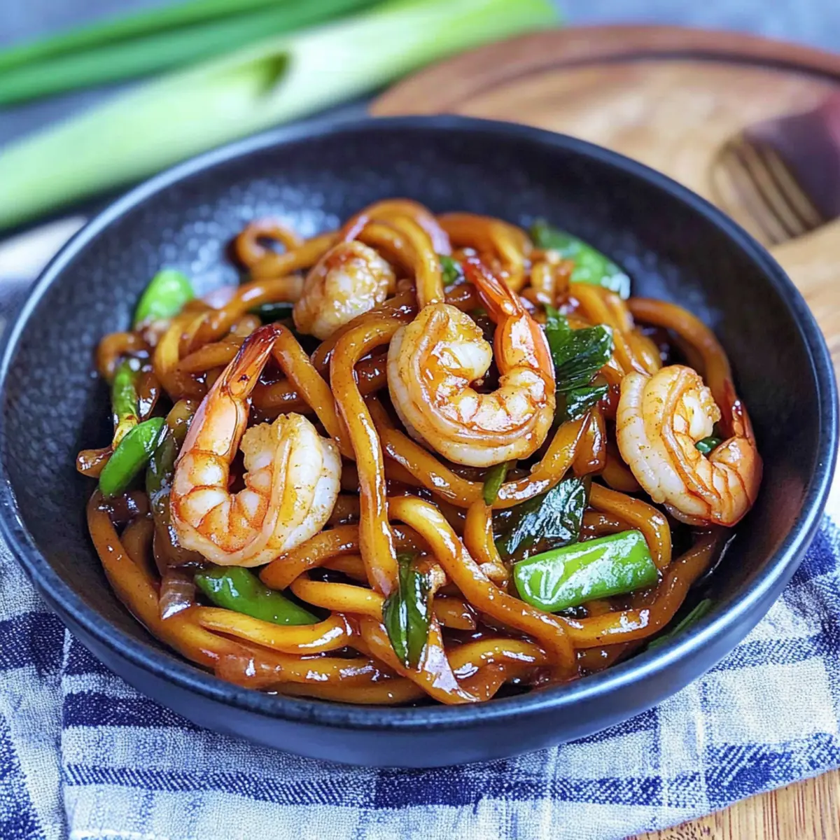 Facebook Twitter Pinterest LinkedInThe aroma of sizzling garlic and savory soy sauce fills the air as I whip up a quick dinner. This isn’t just any meal—it’s my 20-Minute Yaki Udon with Shrimp. In under half an hour, I’m diving into a comforting bowl of this stir-fried paradise, where tender udon noodles, fresh veggies, and succulent shrimp come together in harmony. This recipe is a perfect weeknight solution, offering the joy of homemade food without the long prep time. Plus, it’s a versatile dish you can customize with whatever vegetables you have on hand! Whether you’re serving it for a family dinner or a cozy solo night in, you’ll find that this Yaki Udon will quickly become a beloved staple in your kitchen. So, what’s stopping you from transforming your dinner with this delightful dish? Why is Yaki Udon with Shrimp a Must-try? Quick Preparation: With just 20 minutes on the clock, you’ll have a delightful meal ready, perfect for busy weeknights. Savory Flavor Explosion: The rich sauce, coupled with fresh shrimp and veggies, brings authentic Japanese flavors right to your kitchen. Comfort in a Bowl: Each bite of chewy udon noodles and perfectly cooked shrimp will wrap you in warmth and satisfaction. Customizable Delight: Want to switch it up? Feel free to add in your choice of veggies or swap shrimp for chicken or tofu, just like my Hobo Casserole Ground makes adaptations effortless! Crowd Pleaser: This dish is sure to impress family and friends, making it ideal for gatherings or casual dinners. Healthy and Wholesome: Packed with protein and essential nutrients, it’s a balanced meal option that doesn’t skimp on taste! Yaki Udon with Shrimp Ingredients • Dive into a world of flavor with these essential components! For the Noodles Udon Noodles – The star of the dish, providing a wonderfully chewy texture; vacuum-packed yields the best quality. For the Stir-Fry Neutral Oil – Use any light oil for frying; this ensures your ingredients don’t stick. Shrimp – Provides protein and fresh seafood taste; opt for about 100g, ensuring they are peeled and deveined for ease. Garlic – Minced for that aromatic flavor; it’s a must-have in any stir-fry! Yellow Onion – Sweetness and texture come from this sliced ingredient, enhancing the overall taste. White Mushrooms – Sliced for umami flavor and additional texture; they’re a great complement to the shrimp. Carrot – Adds a lovely crunch and natural sweetness; cut it into matchstick-style pieces for even cooking. Spring Onion – Freshness in both green and white parts; keep them chopped separately for garnish and incorporation. For the Sauce Regular Soy Sauce – A key flavor component that provides saltiness; don’t skip this! Salt and Pepper – Adjust these to taste for balancing the dish’s flavor profile. Oyster Sauce – Essential for depth and umami; it gives the sauce richness. Dark Soy Sauce – Distinguished for its richer color and flavor; avoid using regular soy sauce as a substitute here. Rice Vinegar – Introduces acidity that nicely balances out the flavors; it’s a small touch that makes a big difference! Brown Sugar – Adds sweetness and counterbalances savory flavors; this sweet kick is a secret! Freshly Crushed Black Pepper – For a subtle spice that complements the dish perfectly. Toasted Sesame Oil – A fragrant finish that brings a nutty aroma; just a little goes a long way! With these ingredients ready, you’re set to experience an unforgettable Yaki Udon with Shrimp that delights every palate! Enjoy cooking and savoring your delicious creation! Step‑by‑Step Instructions for Yaki Udon with Shrimp Step 1: Boil the Udon Noodles Begin by bringing a large pot of water to a boil over medium-high heat. Once boiling, add your vacuum-packed udon noodles and cook according to the package instructions, usually about 2-3 minutes, until they’re tender yet chewy. Drain the noodles and immediately rinse them under cold water to stop the cooking process. Drizzle with a touch of oil to prevent sticking and set aside. Step 2: Sauté the Garlic In a large skillet or wok, heat 1 tablespoon of neutral oil over medium heat. Add the minced garlic and sauté for about 1 minute until fragrant and golden, making sure not to let it burn. This aromatic base is essential for flavoring your Yaki Udon with Shrimp. The kitchen will fill with a warm savory aroma as you move to the next step. Step 3: Cook the Mushrooms Next, add the sliced white mushrooms to the skillet, stirring frequently. Sauté them on high heat for about 3-4 minutes, until they soften and begin to release their juices. The mushrooms will take on a beautiful golden color as they cook. This step enhances the umami flavor of your dish, setting the stage for the delectable combination of ingredients. Step 4: Add Onions and Carrots Now, introduce the sliced yellow onions and matchstick carrots into the skillet. Season lightly with salt and pepper, cooking for an additional 2-3 minutes or until the vegetables are tender-crisp. The colors will brighten and the sweetness of the onions will emerge, complementing the savory essence of your Yaki Udon with Shrimp. Once cooked, remove the vegetables from the pan and set them aside. Step 5: Cook the Shrimp In the same skillet, pour in another 2 tablespoons of oil and increase the heat to high. Add the peeled and deveined shrimp, cooking for about 2-3 minutes until they turn pink and opaque. As the shrimp cook, drizzle in regular soy sauce for flavor and lightly season with salt, allowing the shrimp to absorb all the delightful essences. Step 6: Stir-Fry the Noodles Once the shrimp are perfectly cooked, add the reserved udon noodles to the skillet. Stir everything continuously over high heat for about 3-4 minutes, allowing the noodles to heat through and start to crisp slightly along the edges. The noodles should be mixing beautifully with the shrimp, showcasing the delightful foundation of your Yak
